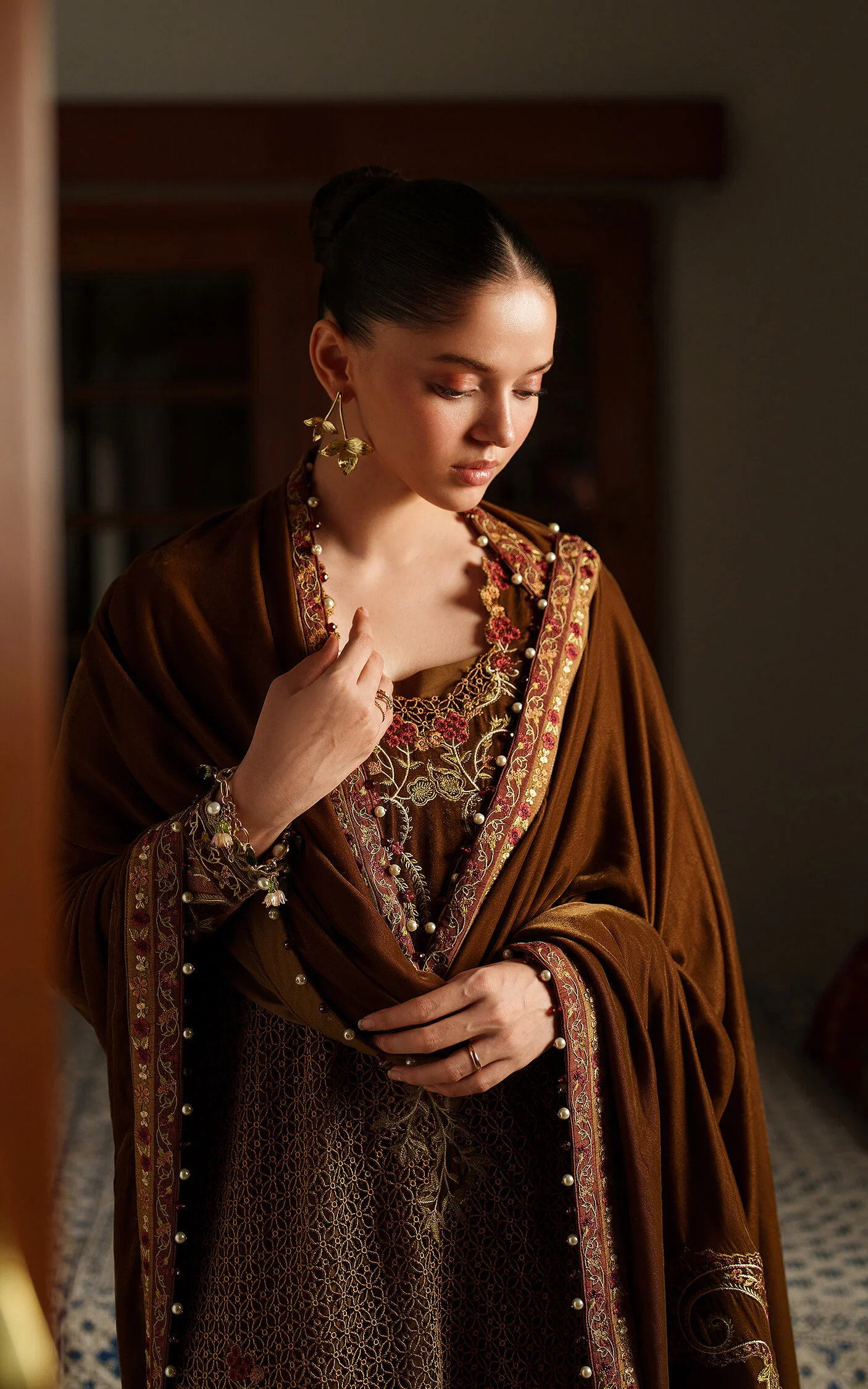 - Plain velvet shawl.