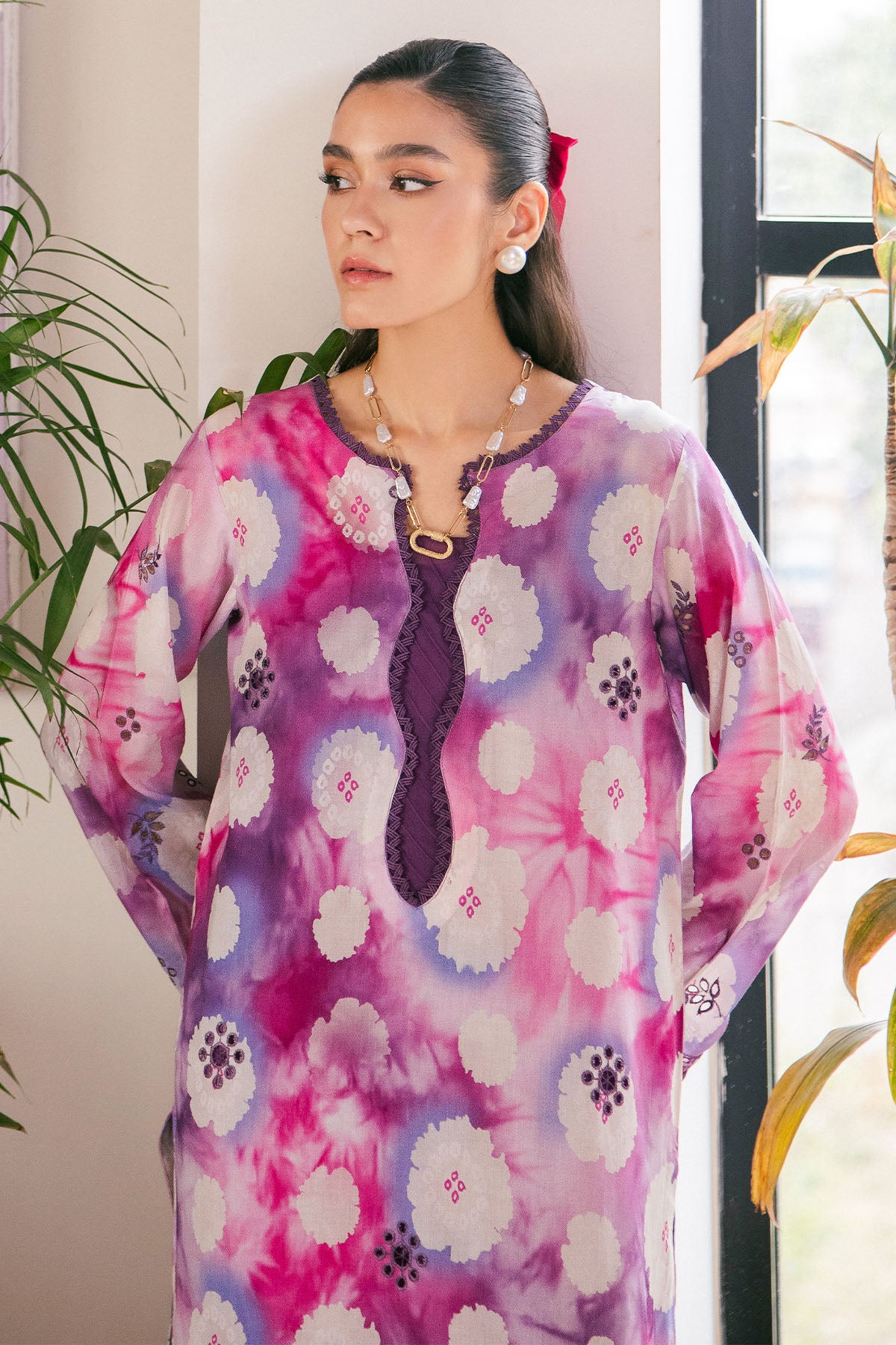 - Printed And Embroidered Chikankari Lawn Shirt