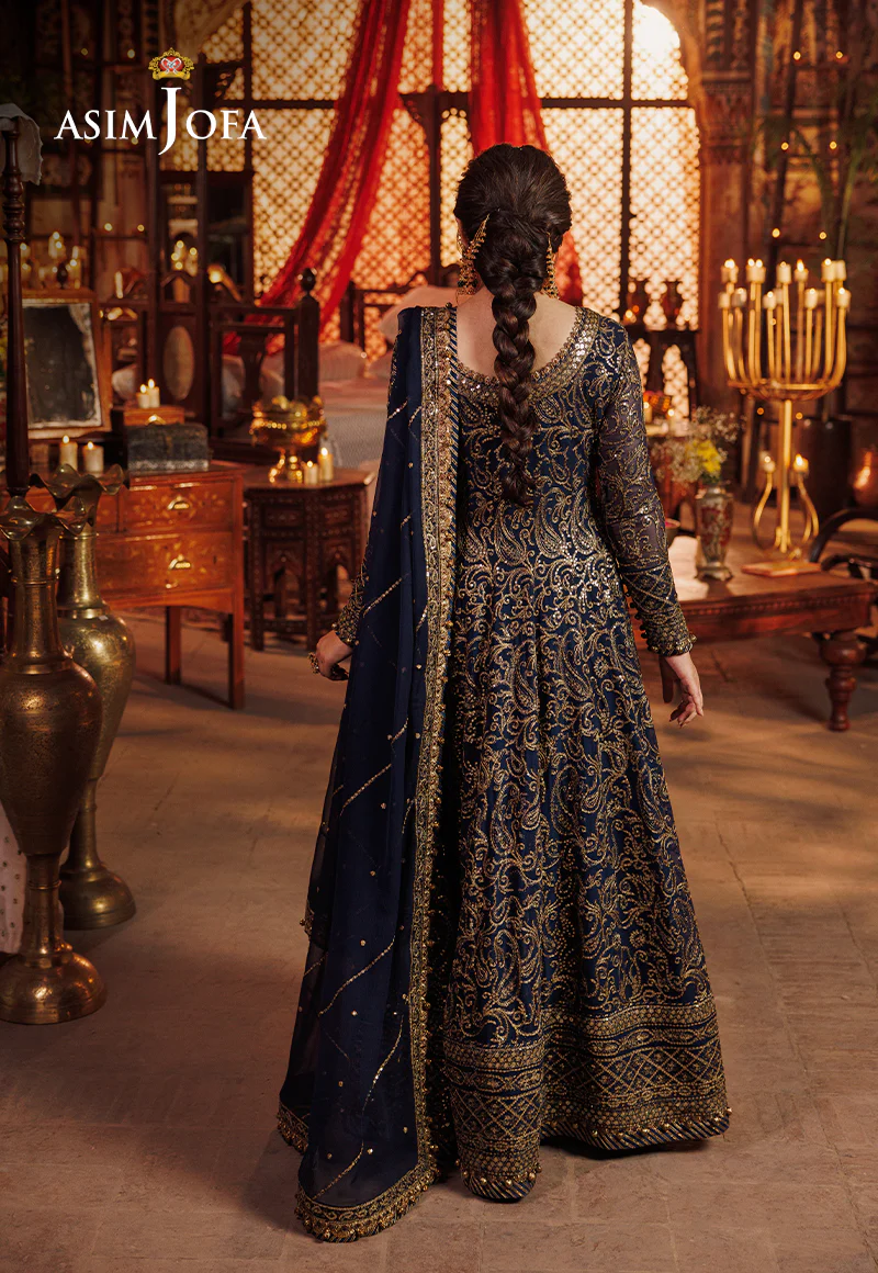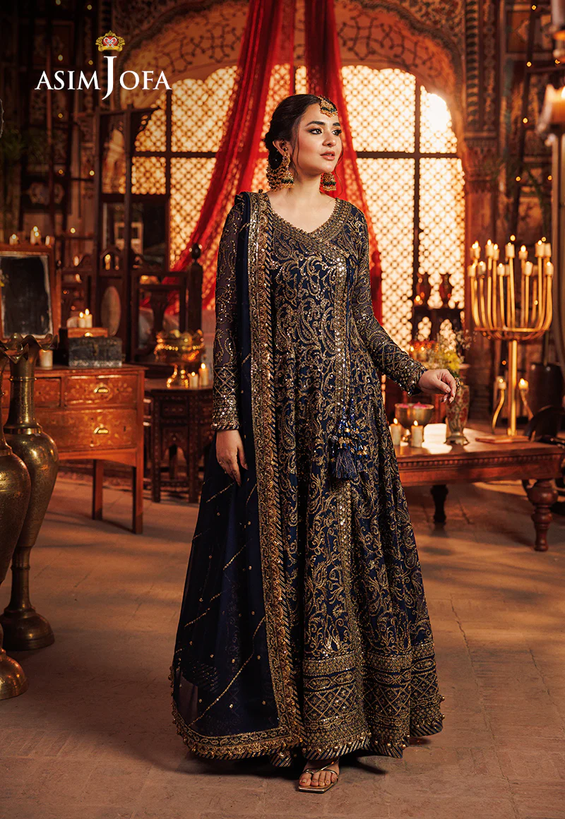 Indulge in the ethereal beauty of our navy blue embroidered kalidar angrakha from the enchanting “Chikankari” Eid collection by Asim Jofa. Crafted with meticulous attention to detail, each thread of embroidery blooms like a delicate petal of artistry and craftsmanship. The intricate embroidery weaving a captivating story of beauty and grace. Every stitch is a testament to the timeless charm of Chikankari craftsmanship transporting you to a garden of dreams where nostalgia meets elegance. Step into this masterpiece and let yourself be enveloped in the warm glow of vintage romance where love is celebrated through timeless elegance.