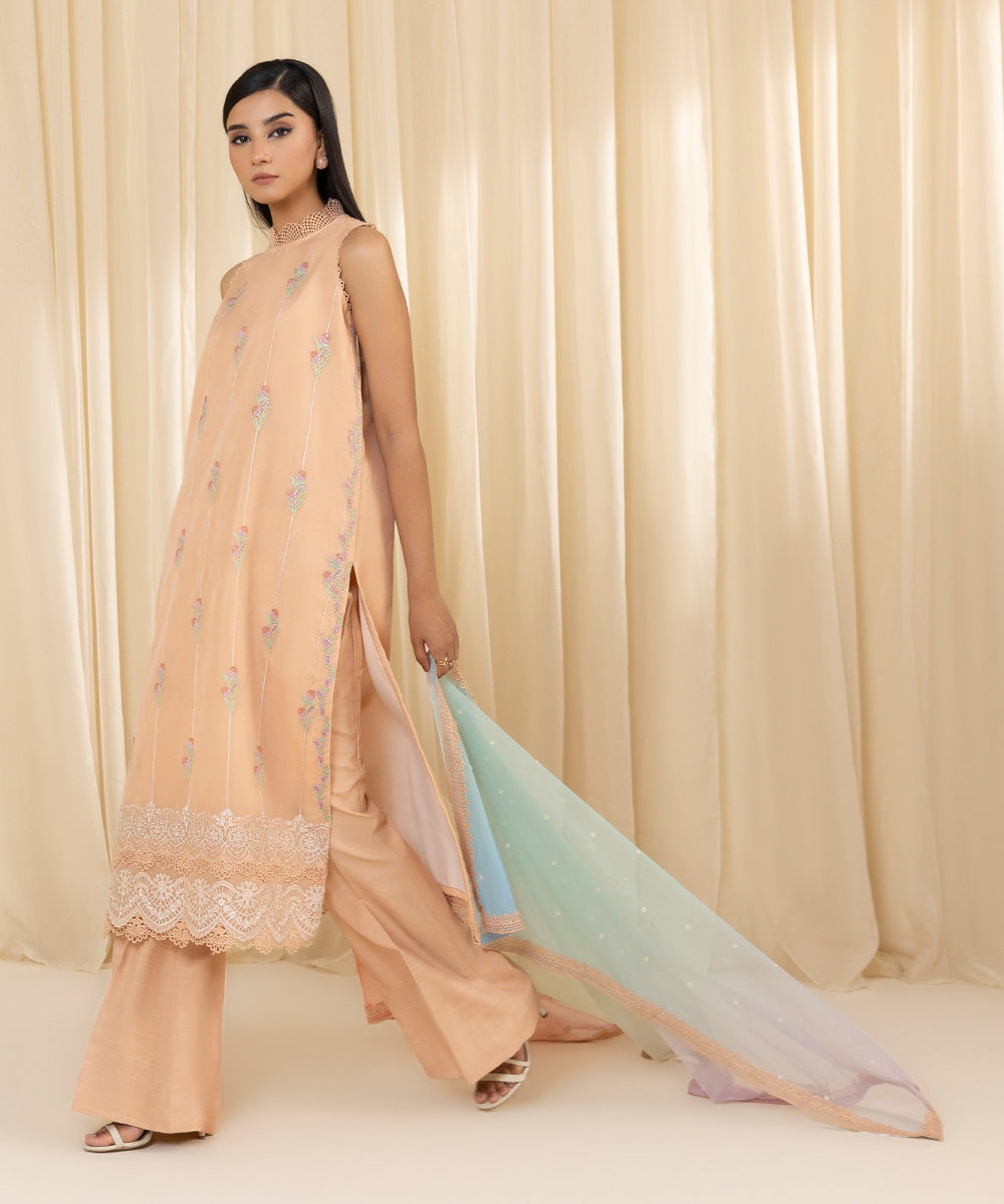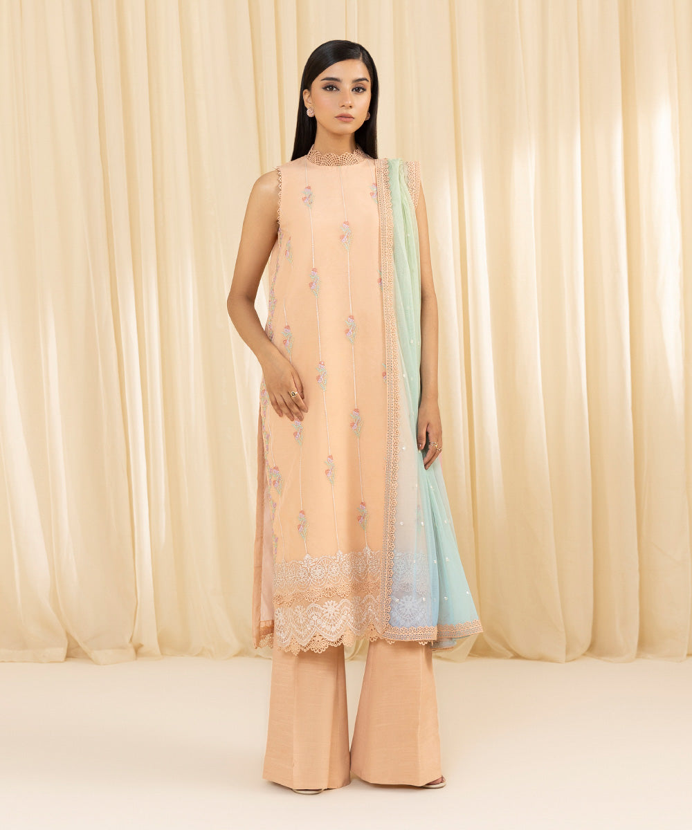 Dyed Embroidered Blended Organza Shirt Front 0.85M