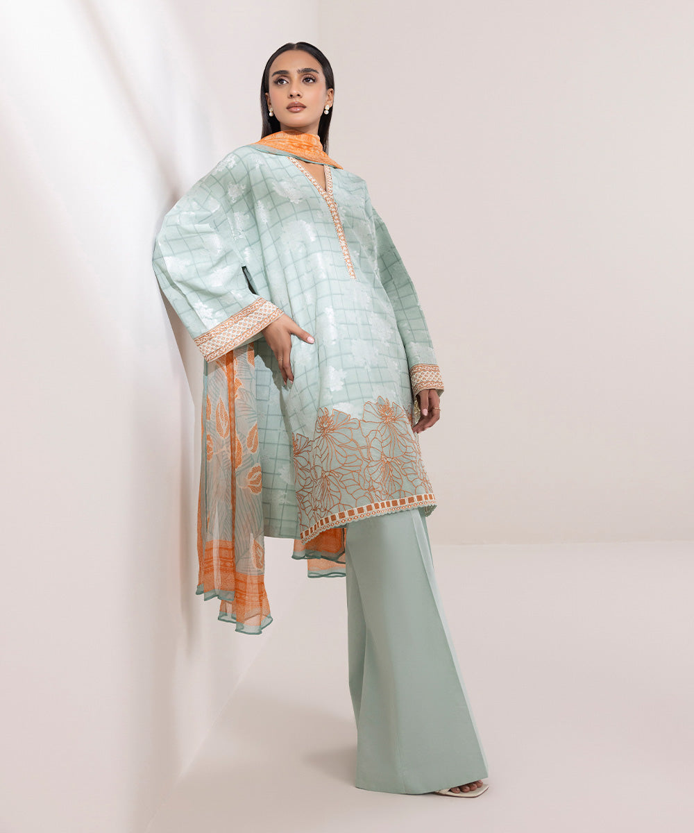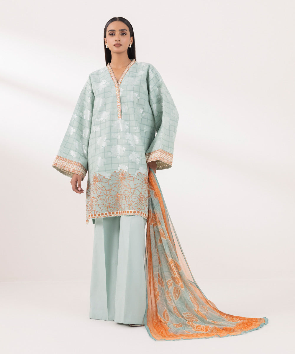 Embroidered Neckline & Sleeves Border 1PC