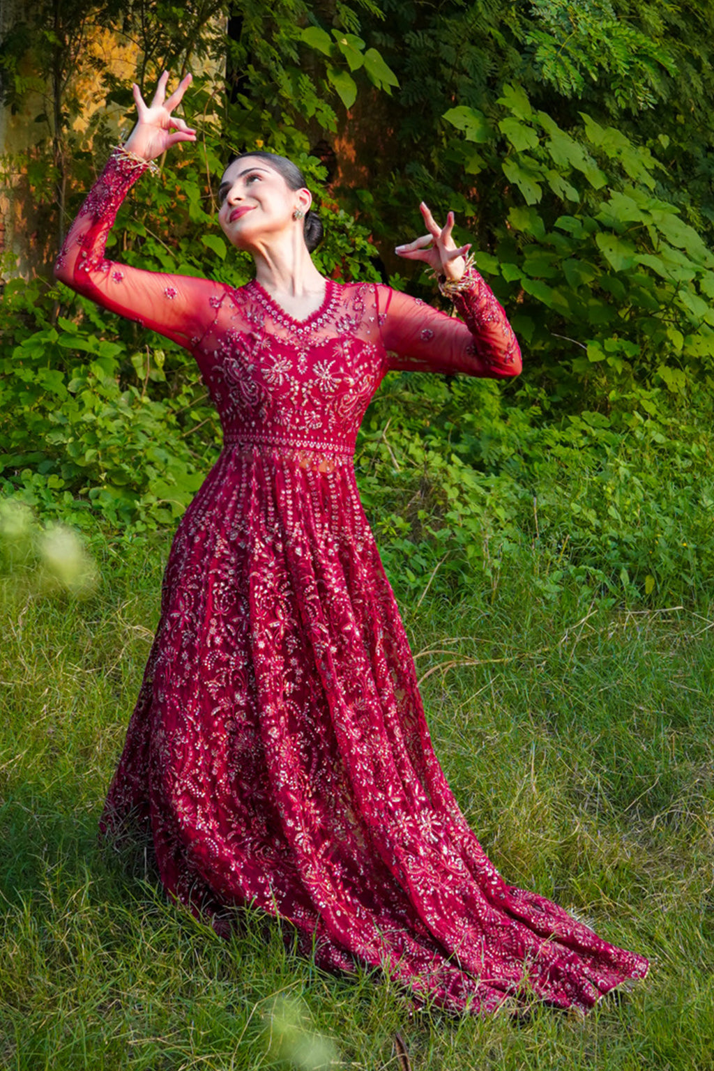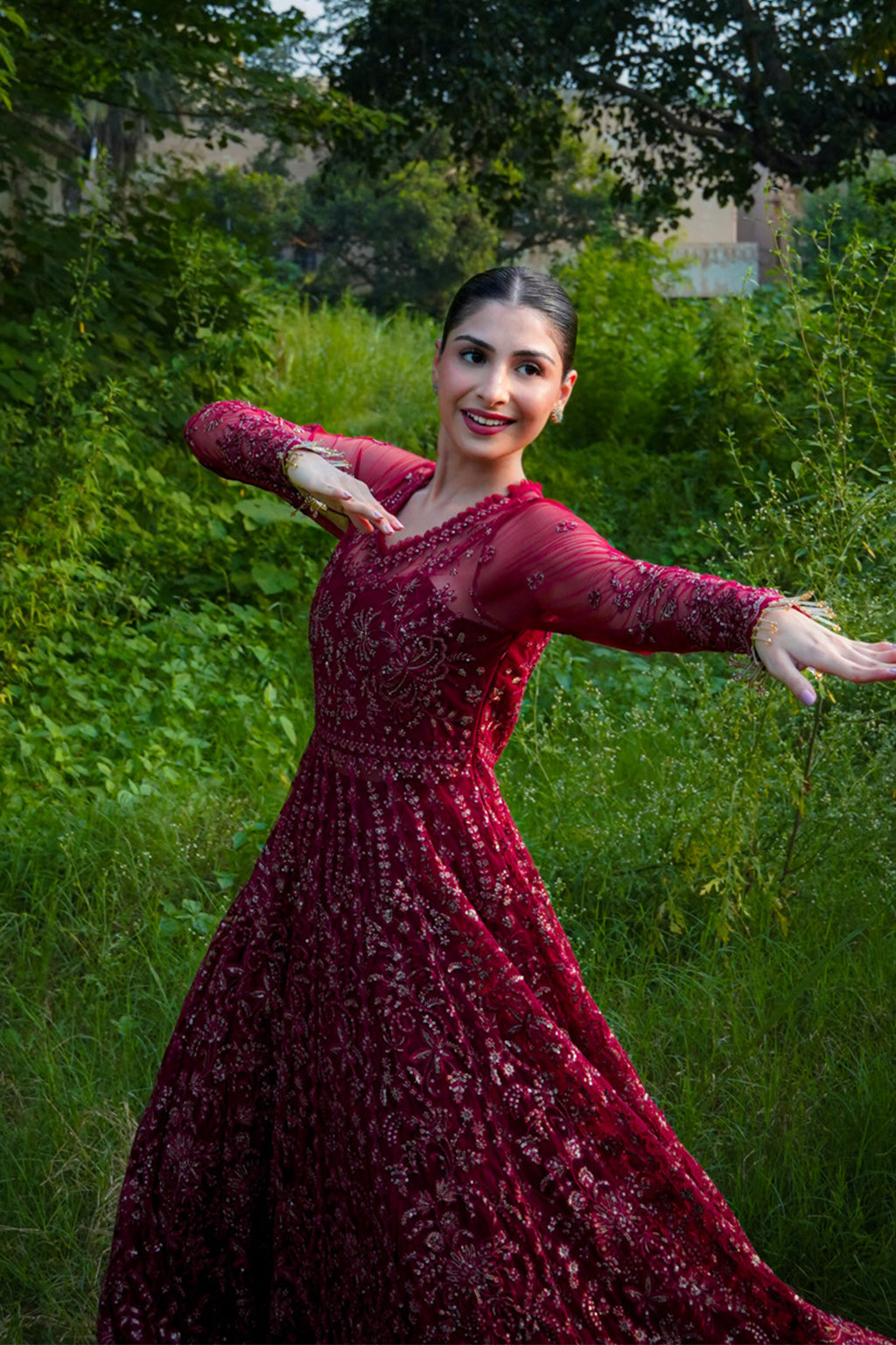 Embroidered Sleeves On Net 1 Piece