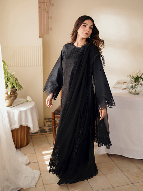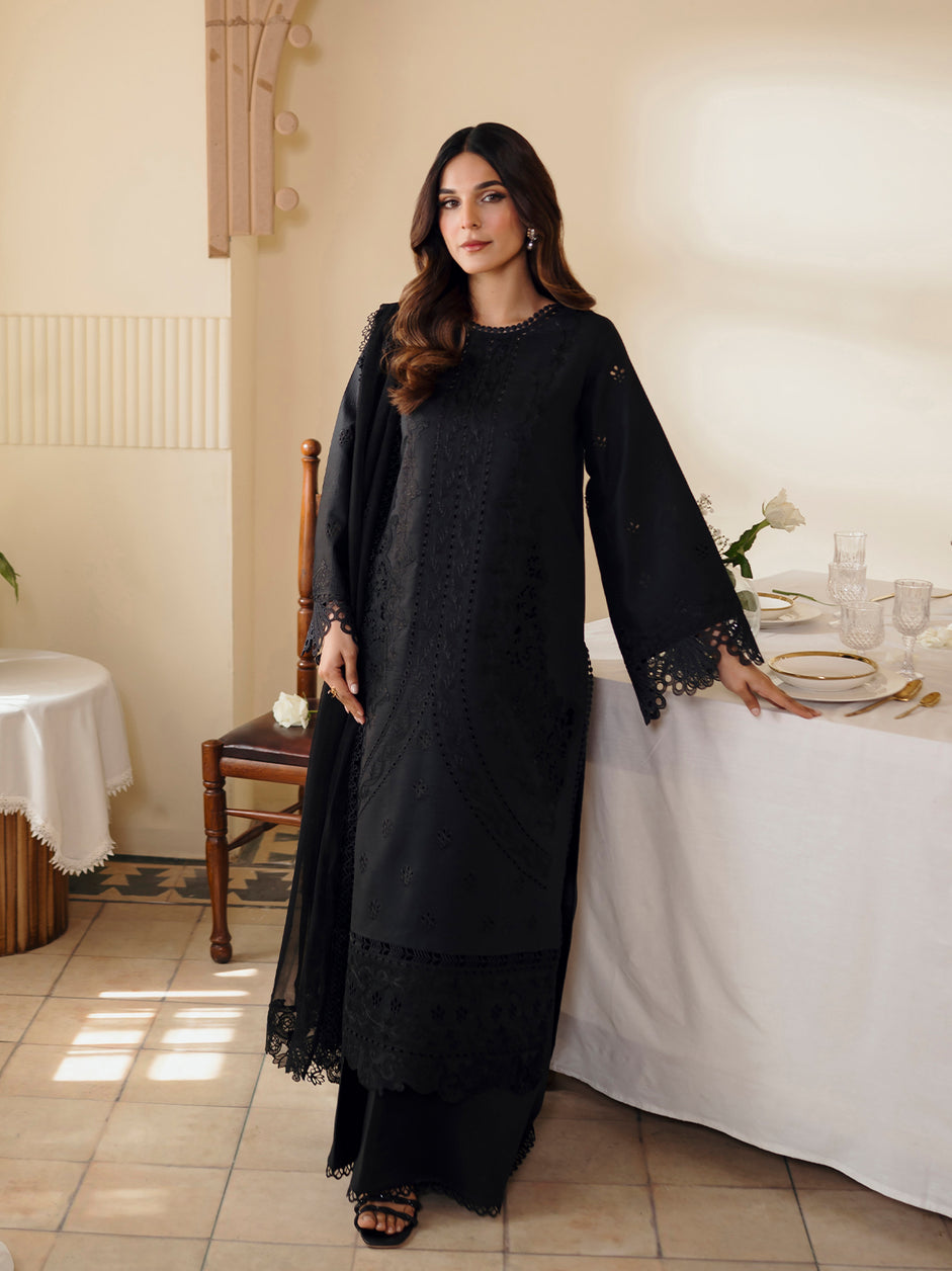 Crafted with meticulous attention to detail, it comprises a lawn shirt exquisitely embroidered to perfection. Paired with a luxurious chiffon dupatta, adorned with delicate embroidery, and a plain dyed cotton trouser, this ensemble epitomizes elegance and sophistication. The intricately embroidered dupatta, featuring a chiffon fabric, adds a touch of ethereal charm, while the organza embroidered pallu border enhances its allure. Further embellished with embroidered motifs on the front and a meticulously crafted hem border, this ensemble exudes timeless grace.